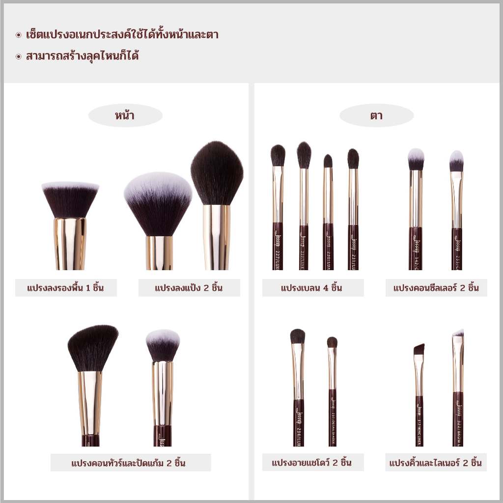 เซ็ตแปรงแต่งหน้า T283 Jessup 15Pcs Zinfandel Essential Brushes Set
