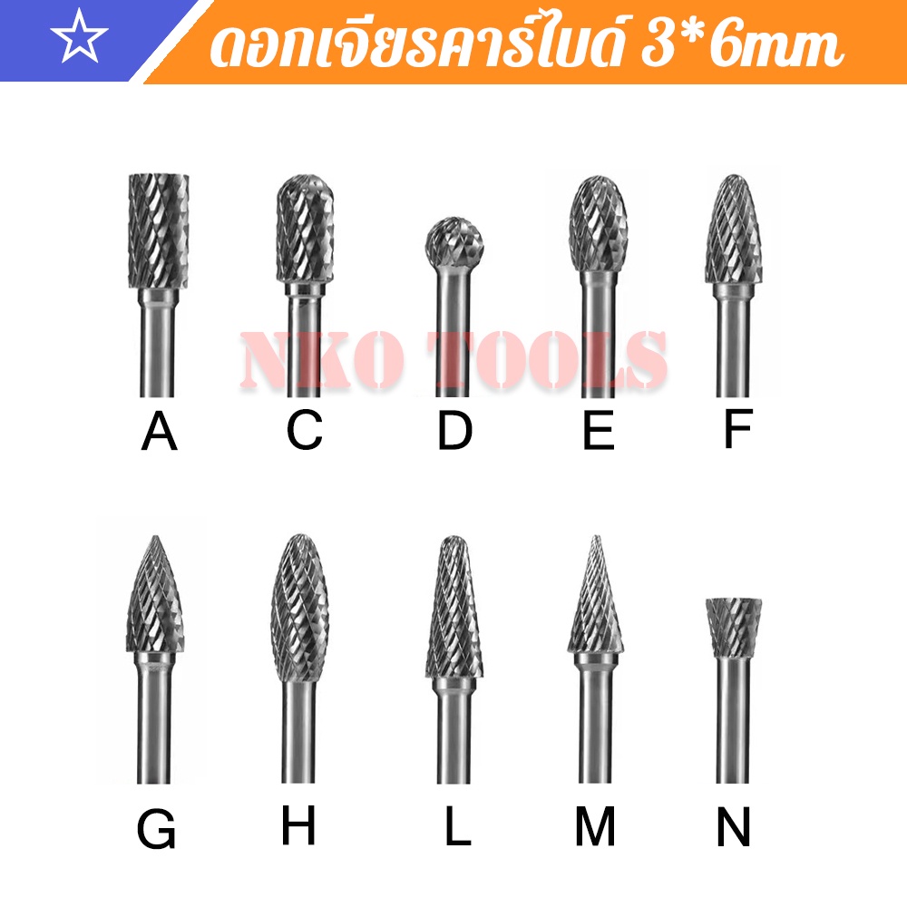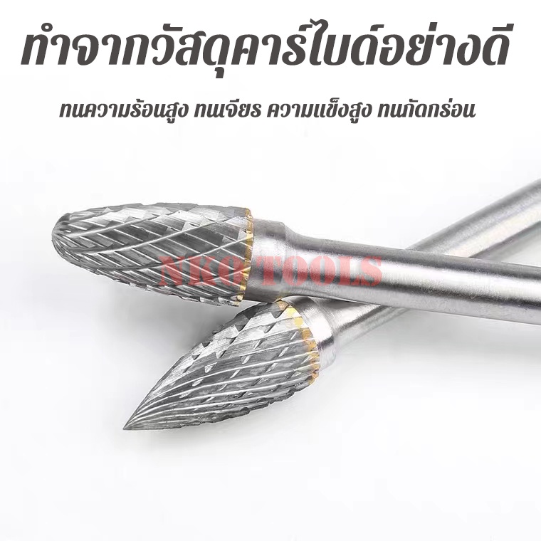 ดอกเจียรคาร์ไบด์ ดอกเจียรเหล็ก เจียรสแตนเลส ดอกคาร์ไบด์ แกน 3มิล หัว 6มิล ยาว 100มิล ดอกแยงเสื้อสูบ