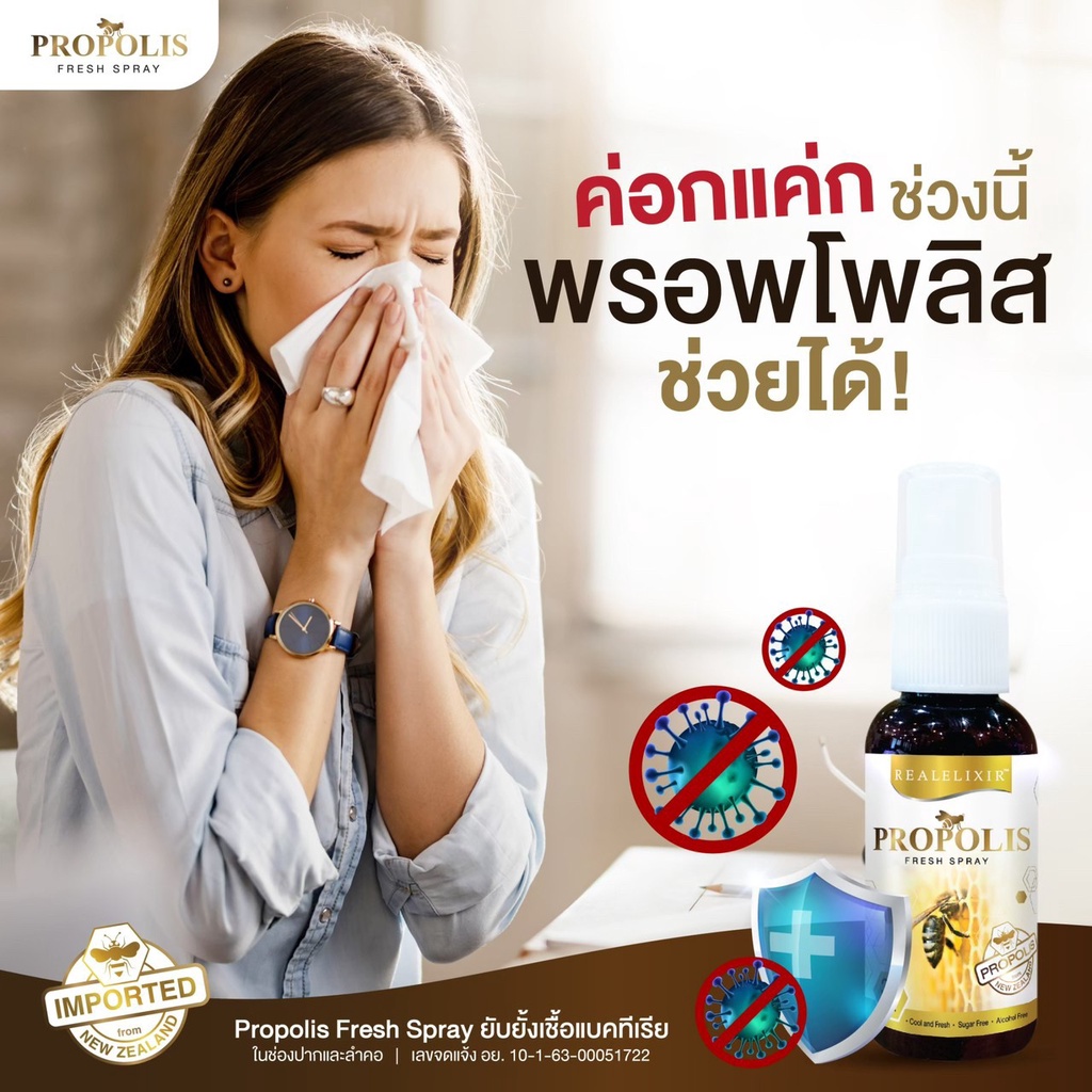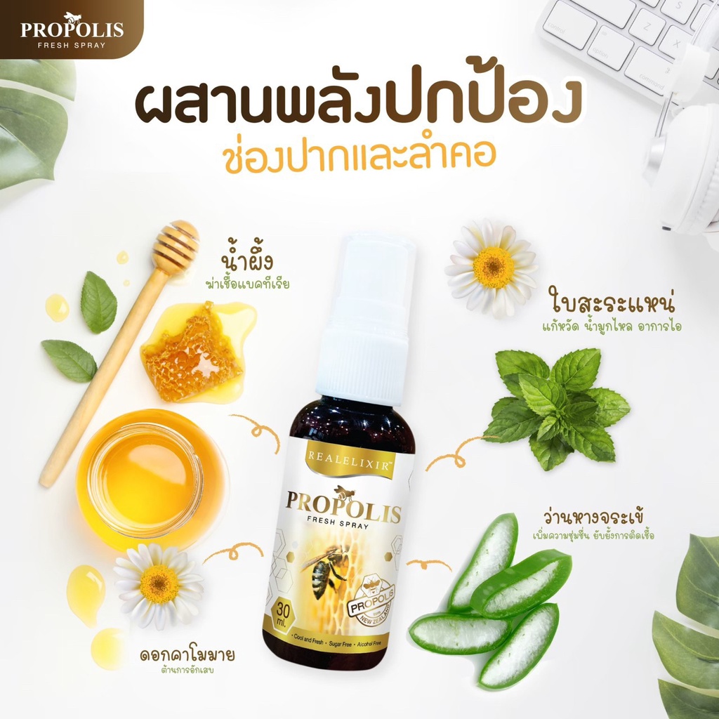 Real Elixir Propolis Fresh Spray สเปรย์พ่นช่องปาก ขนาด 30 ml (มีกล่อง+ก้าน)