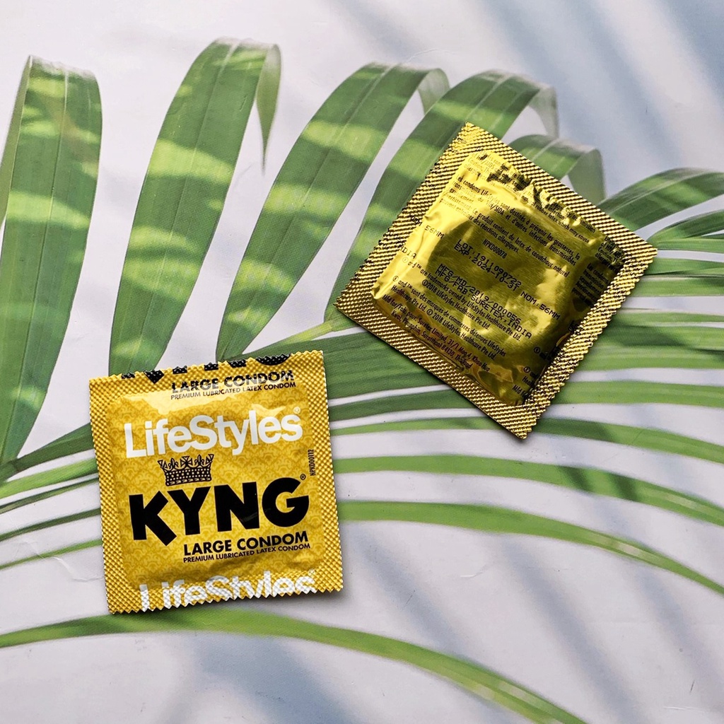 ถุงยางอนามัย รุ่นบางเฉียบ ขนาดใหญ่ รูปทรงคลาสสิก KYNG GOLD Large Condom 56 mm 5, 10 or 20 Pieces (LifeStyles®)