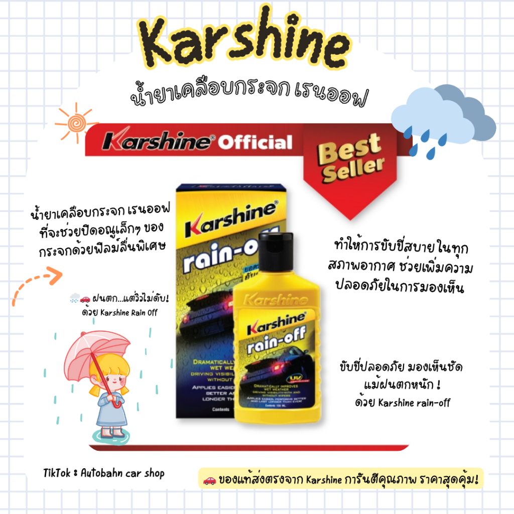 คาร์ชายน์ Karshine Rain off น้ำยาเคลือบกระจก น้ำยาเคลือบกระจกรถยนต์ เคลือบกระจก ฟรีผ้าสำลี1ผืน
