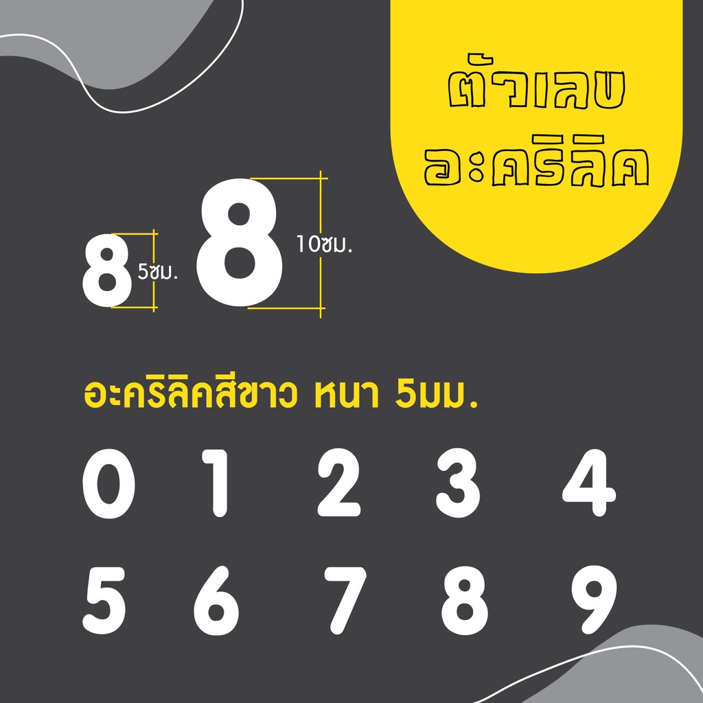 ตัวเลขอะคริลิคสีขาว ความหนา 5 มิล
