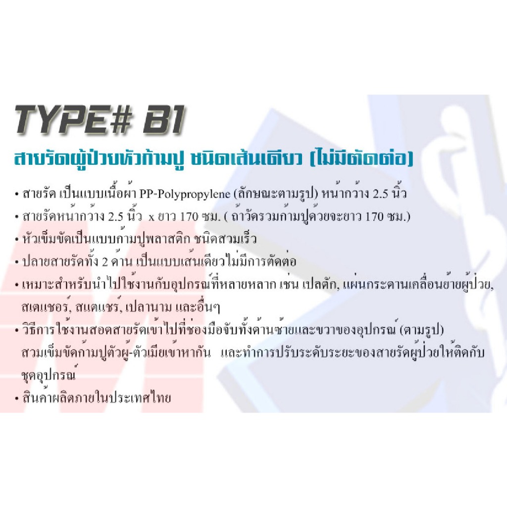 [สาย PP-ธรรมดา-เฉพาะใบกำกับภาษี] สายรัดบอร์ด ชนิดไนร่อนธรรมดา-เนื้อหยาบ แบบต่างๆ สำหรับรัดตัวผู้ป่วย