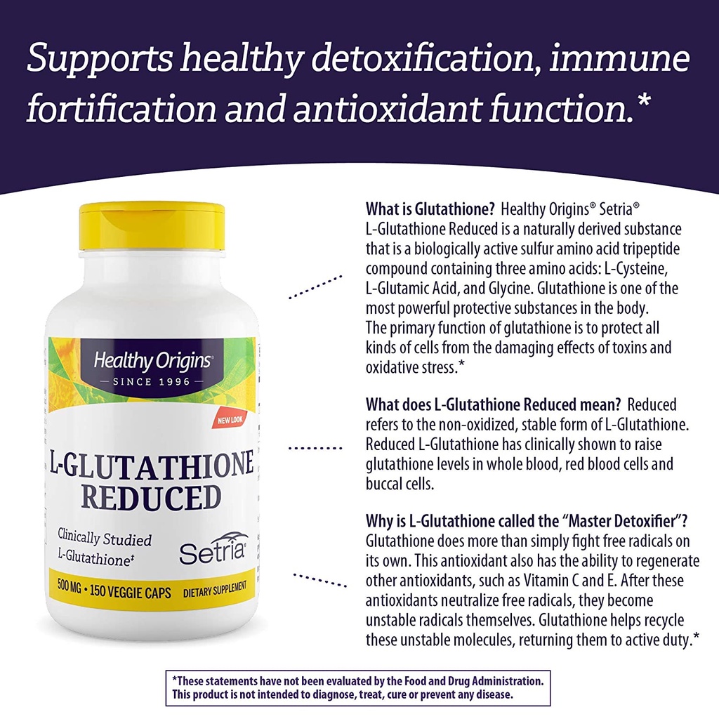 แอล - กลูตาไธโอน Healthy Origins® Setria L-Glutathione Reduced 500 mg 150 Veggie Caps