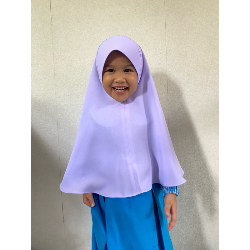 ฮิญาบเด็กนักเรียนผ้าบิสกิน สีขาวโอโม่