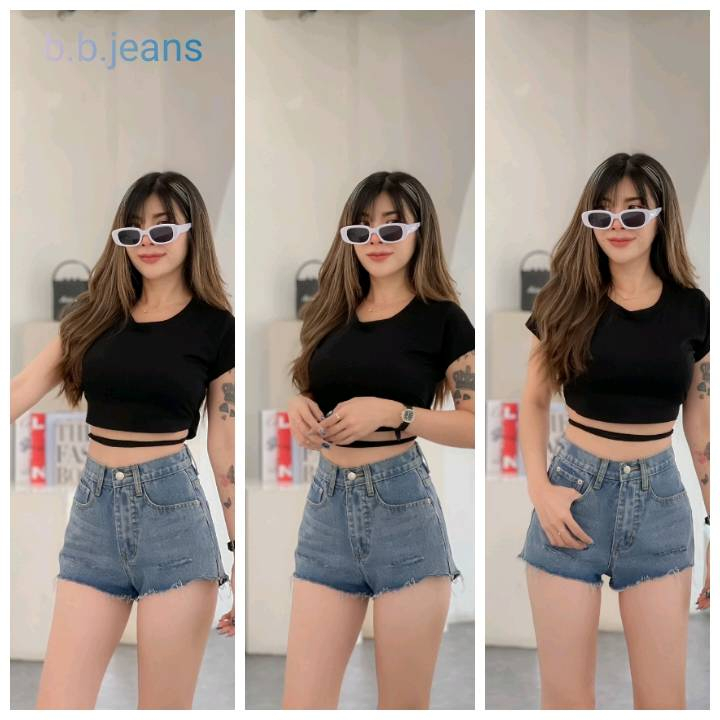 🔥ขายดี🔥กางเกงยีนส์ขาสั้นเอวสูง สไตล์เกาหลี กีดขาด 2 ข้าง ทรงสวย เซ็กซี่ มี 2 สี💕