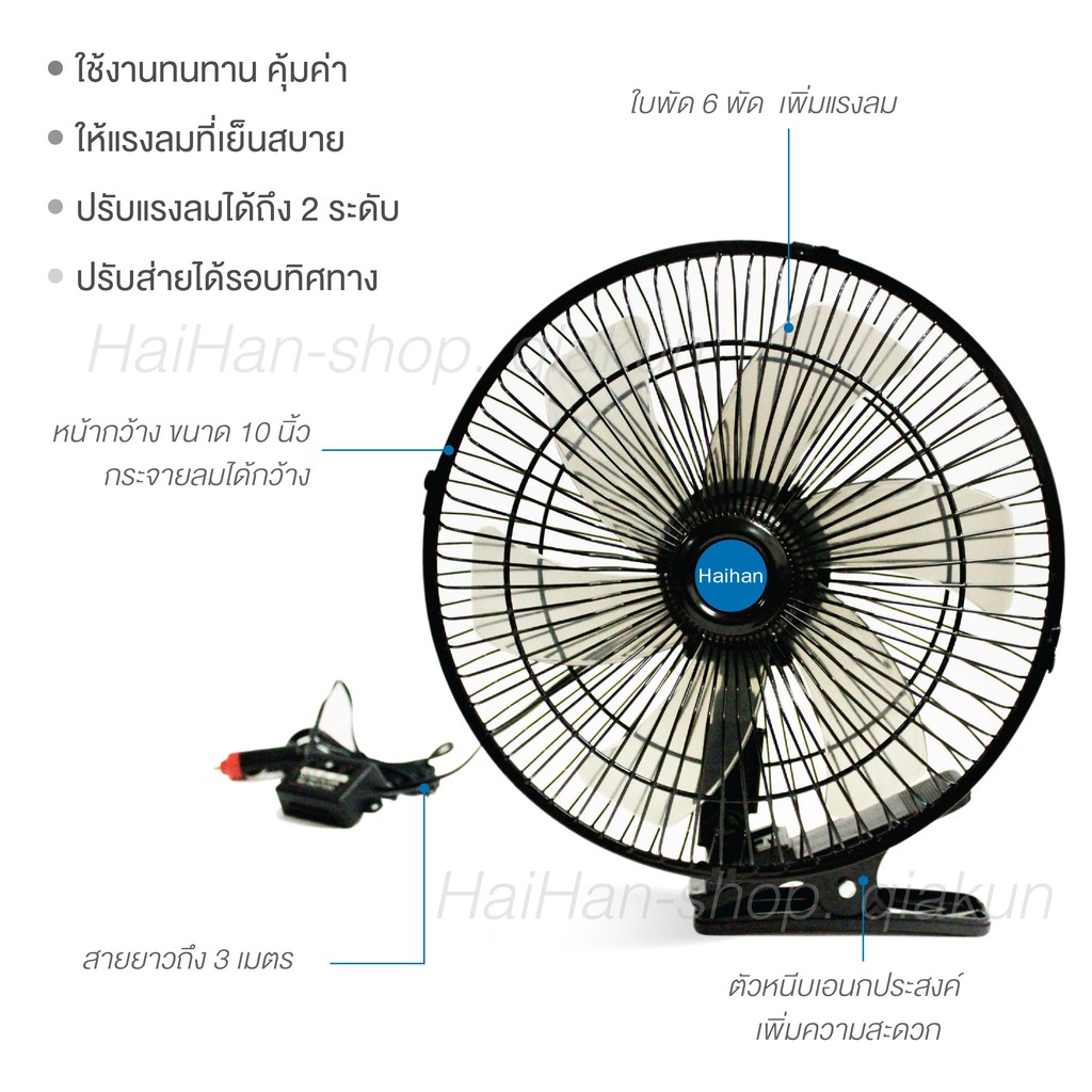 พัดลมติดหน้ารถยนต์ 10 นิ้ว 6 ใบพัด 12 โวลต์ และ 24 โวลต์ ลมแรงมอเตอร์ใหญ่