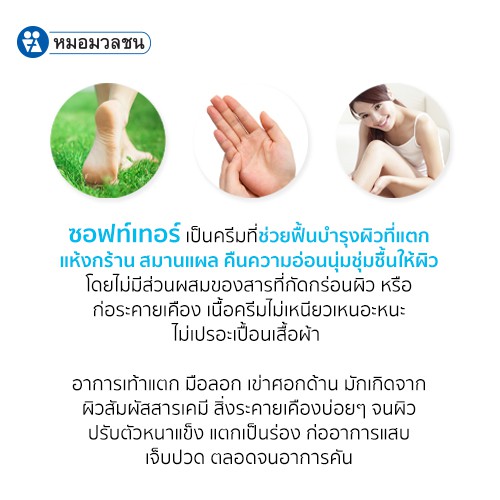หมอมวลชน ซอฟท์เทอร์ Softer ครีมทาส้นเท้าแตก มือลอก ข้อศอกด้าน ขนาด 100 กรัม