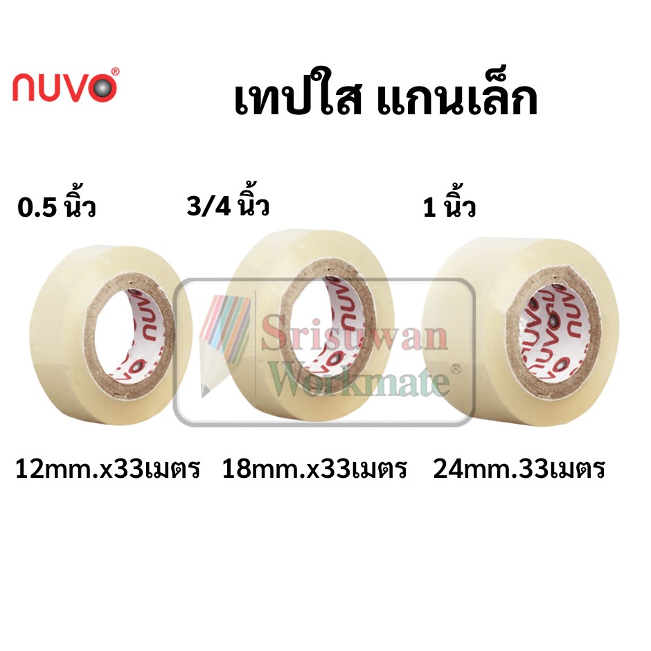แยกม้วน 1 ม้วน เทปใส nuvo ขนาด 1/2นิ้ว(12มม.) 3/4นิ้ว(18มม.) 1นิ้ว(24มม.) เทปใสแกนเล็ก และแกนใหญ่ สก็อตเทปใส เทป ใสพิเศษ
