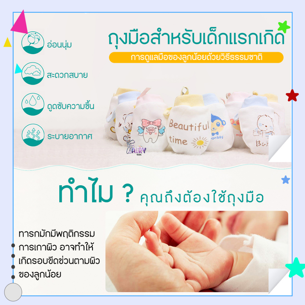 A0033 ถุงมือเด็กแรกเกิด ลายน่ารักๆ สำหรับเด็กแรกเกิด ผ้านุ่มนิ่ม สวมใส่สบาย ไม่ระคายเคืองผิว