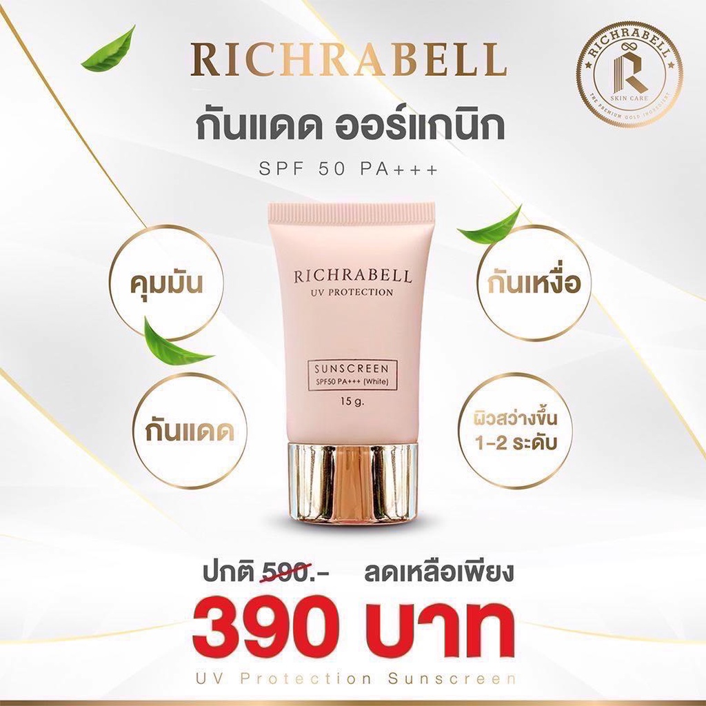 [ส่งด่วน] Richrabell ริชราเบล กันแดด น้ำนม ป้องกันผิวจากแสง ยูวี แสงสีฟ้า คุมมัน ซึมไว เนื้องเบาบาง ไม่หนักหน้า