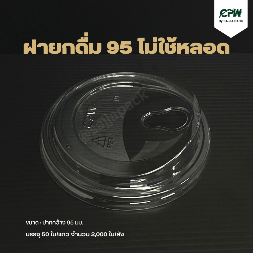 ฝายกดื่ม ปาก 95 มม. ไม่ใช้หลอด (PET) CPW *เฉพาะฝา* (จำนวน 50 ใบ)