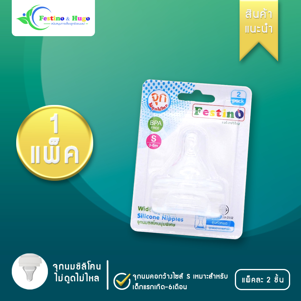 Festino จุกนมซิลิโคน100% ปากกว้าง 1 แพคมี 2 ชิ้น รุ่นบางนุ่มพิเศษ