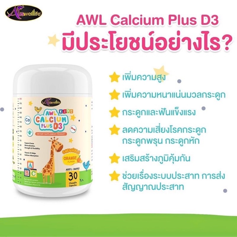 แคลเซียมเพิ่มความสูง AWL Calcium Plus D3 แคลเซียมสำหรับเด็ก รสส้ม แบบเคี้ยวทานง่าย
