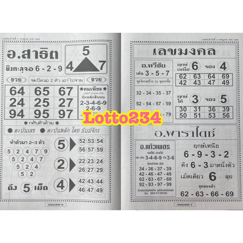 เลขมงคล รายงวด งวดใหม่ หนังสือหวย สมุดหวย ใบใบ้หวย ล็อตเตอรี่ หวย เลขเด็ด รางวัลที่หนึ่ง รางวัลเลขท้ายสองตัว