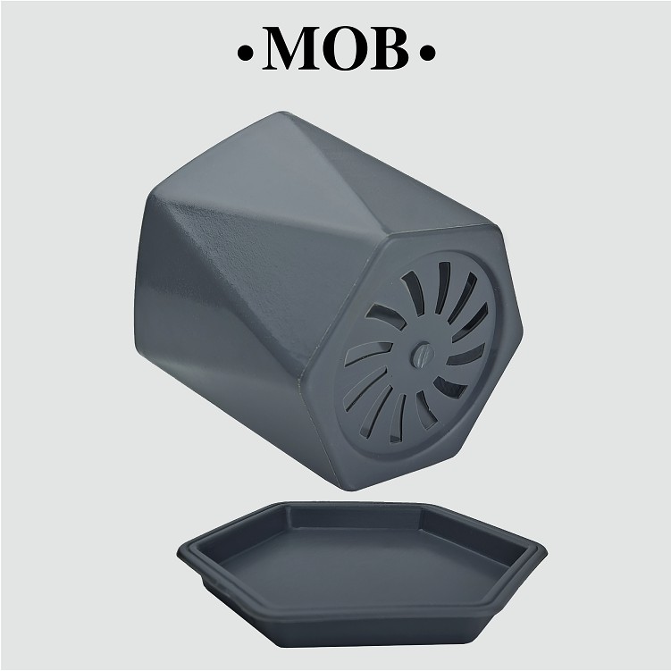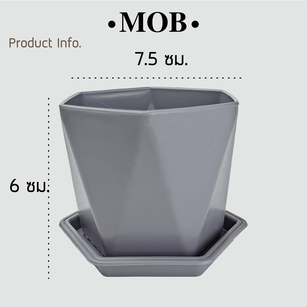 MOB กระถางหกเหลี่ยม 3 นิ้ว พร้อมจานรอง 6 เหลี่ยม กระถางเพชร กระถางต้นไม้ พลาสติก