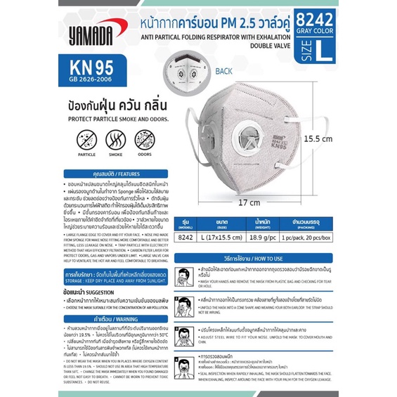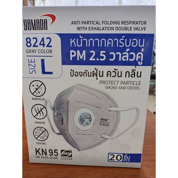 Yamada 8242 วาลว์คู่ หน้ากากคาร์บอน KN95 แพ้คเกจใหม่ราคาต่อ 1 ชิ้นหมดอายุ 2030