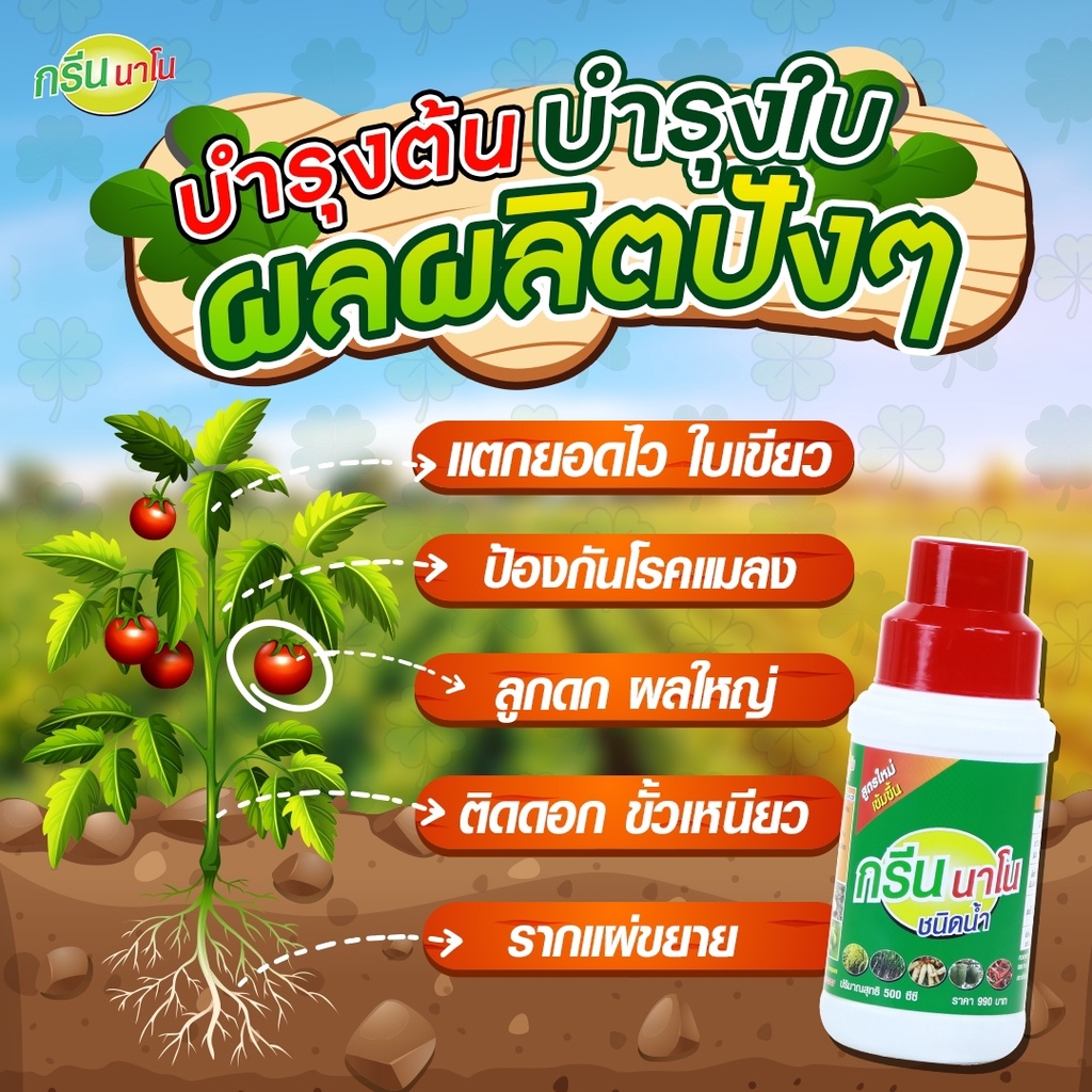 กรีนนาโนชนิดน้ำ เร่งเขียว โตไว ป้องกันแมลง บำรุงพืช กินปุ๋ย ลดค่าปุ๋ย ยา สารเคมี