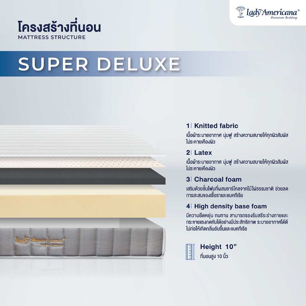 Lady Americana ที่นอนยางพารา รุ่น Super Deluxe หนา 10 นิ้ว ฟรีชุดเครื่องนอน [รับประกัน 12 ปี]