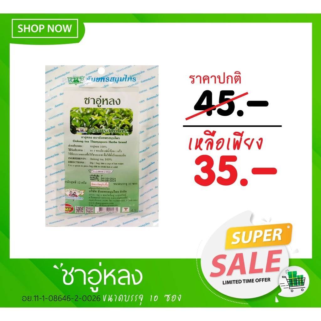 ชาอู่หลง 100% บำรุงร่างกาย ลดน้ำตาลในเลือด ความดัน ไขมันคอเลสเตอรอล ไม่มีน้ำตาล ธันยพรสมุนไพร 10 ซอง