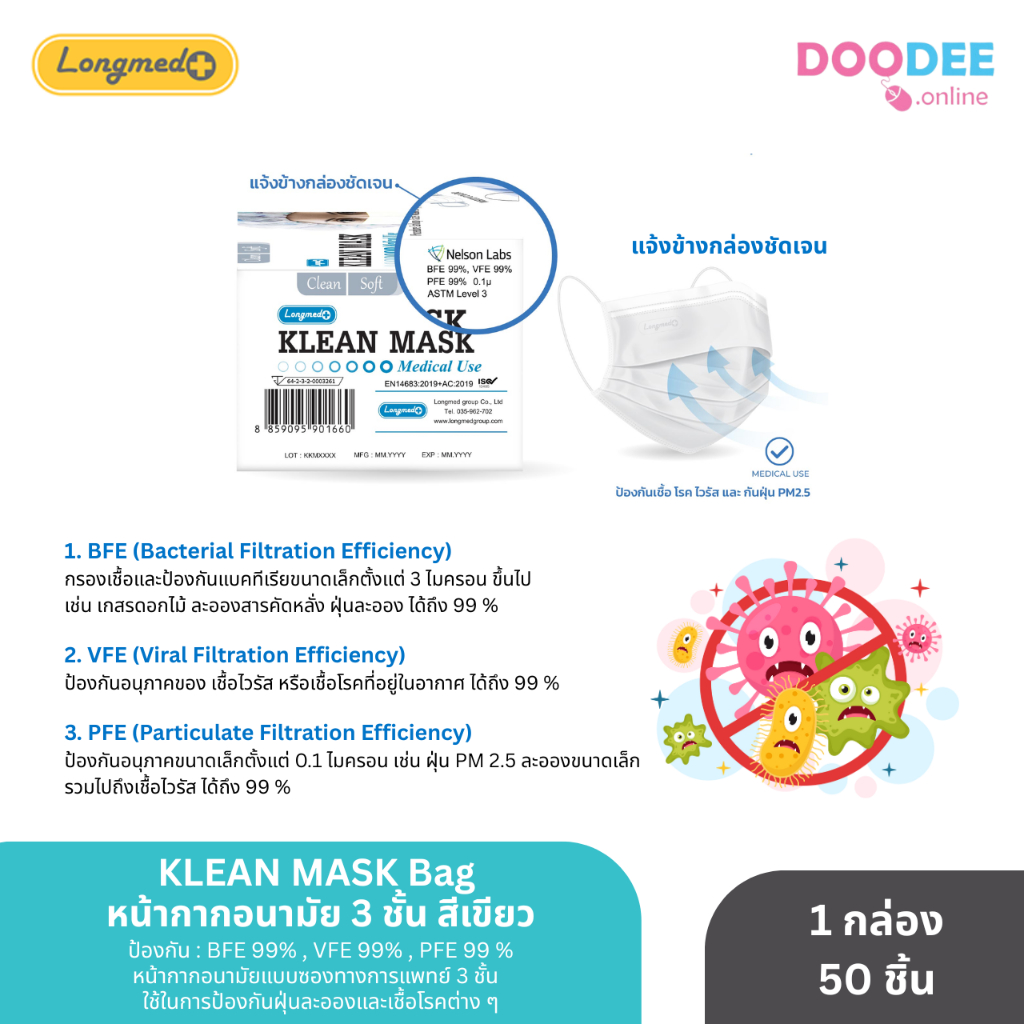 KLEAN MASK (กล่อง50ชิ้น) หน้ากากอนามัย คลีน มาสค์ สีเขียว (F08-3)