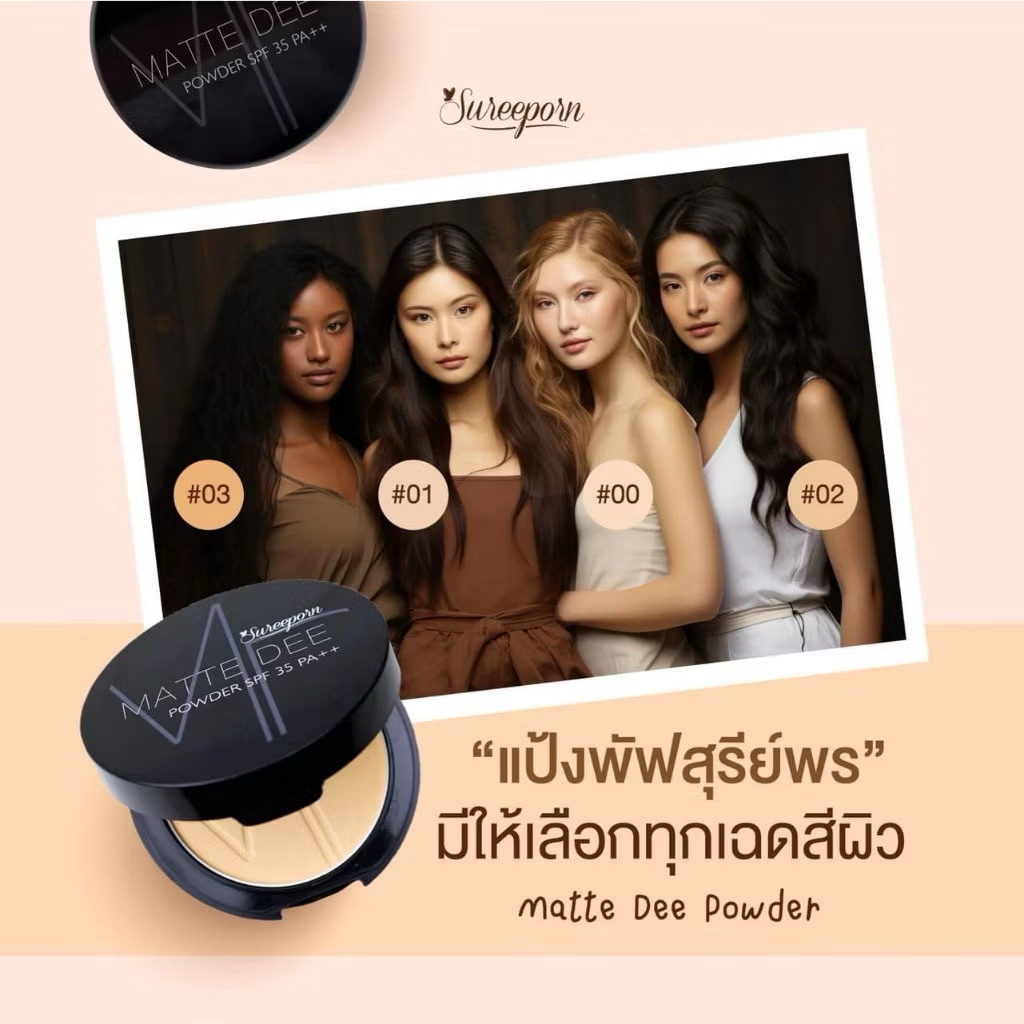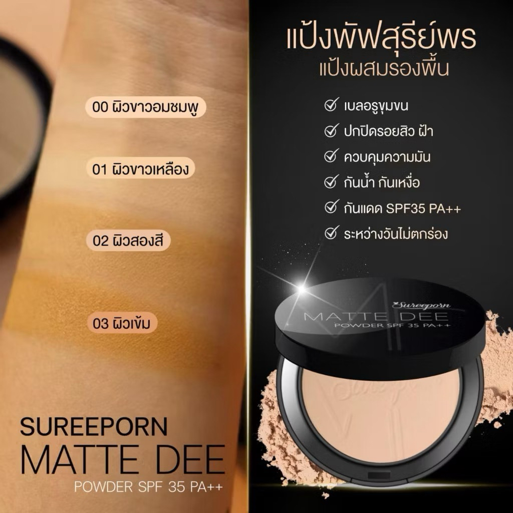 SUREEPORN แป้งพัฟ สุรีย์พร MATTE DEE COSMETIC แป้งพัฟผสทรองพื้น มีกันแดด ปกปิดดี
