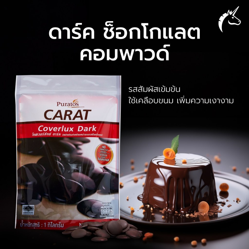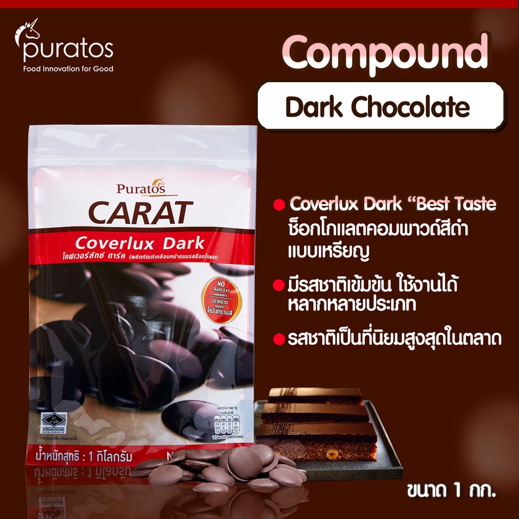 ดาร์ก ช็อกโกแลต คอมพาวด์ ช็อคโกแลตเหรียญทำขนม ขนาด 1 kg Puratos Carat Coverlux Dark chocolate compound 1 kg