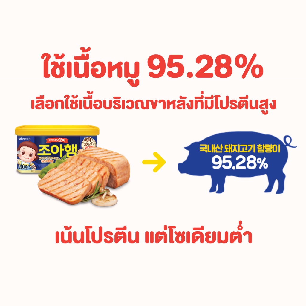 [สินค้าขายดี] แฮมกระป๋อง สแปมกระป๋อง เนื้อหมู 95.28% โปรตีนสูง โซเดียมต่ำ อาหารสำหรับเด็ก 1 ปีขึ้นไป