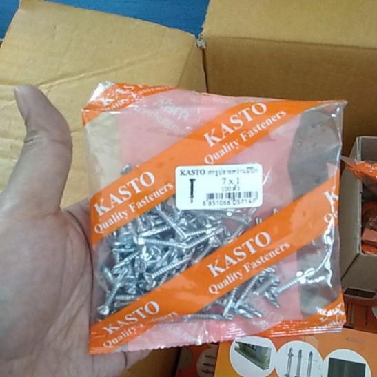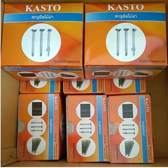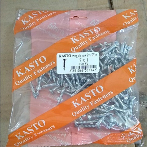 Kasto ( กล่อง ) สกรูยึดไม้ฝา ปลายสว่านมีปีก หัว เอฟ F เบอร์ 7 ขนาด 3/4", 1" , 1-1/2", 1-1/4", 1-3/4", 2" ราคายกกล่อง