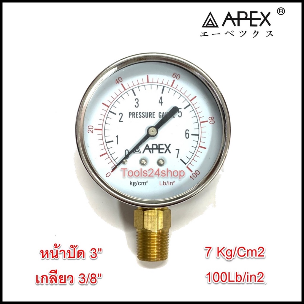 APEX เกจวัดความดัน Pressure Gauge หน้าปัด 3" เกลียว 3/8"