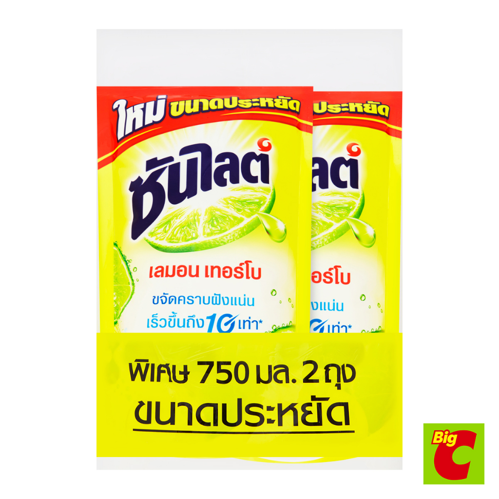 ซันไลต์ เลมอน เทอร์โบ น้ำยาล้างจาน 750 มล. แพ็ค 2