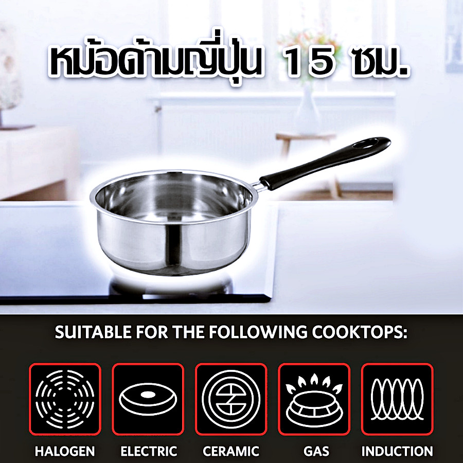 หม้อด้ามสแตนเลส หม้อด้ามญี่ปุ่น หม้อโจ๊ก ทอดไข่ดาว หม้อต้มมาม่า 15 ซม. ใช้สำหรับอุ่น ต้ม อาหารต่างๆ
