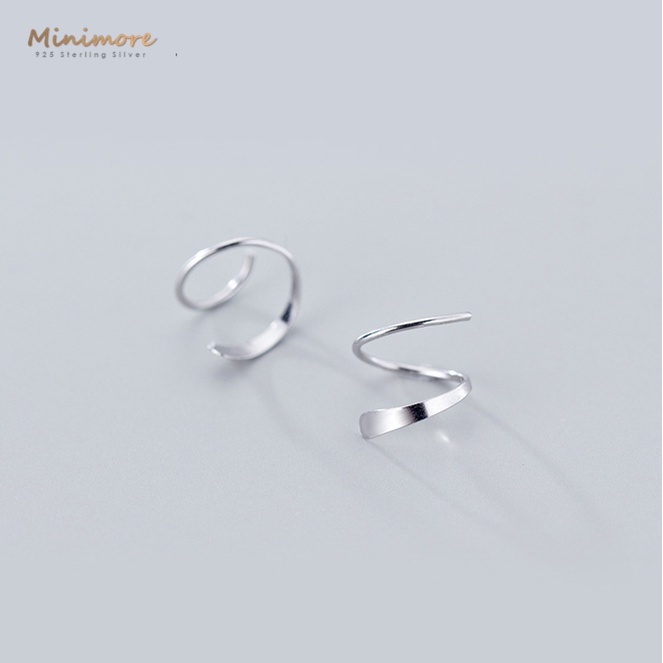 [SE126]🌟ต่างหูเงินแท้ 92.5%🌟เกลียวเงินผิวเงา สุด chic สไตน์มินิมอล เหมาะกับคนแพ้ง่าย 925