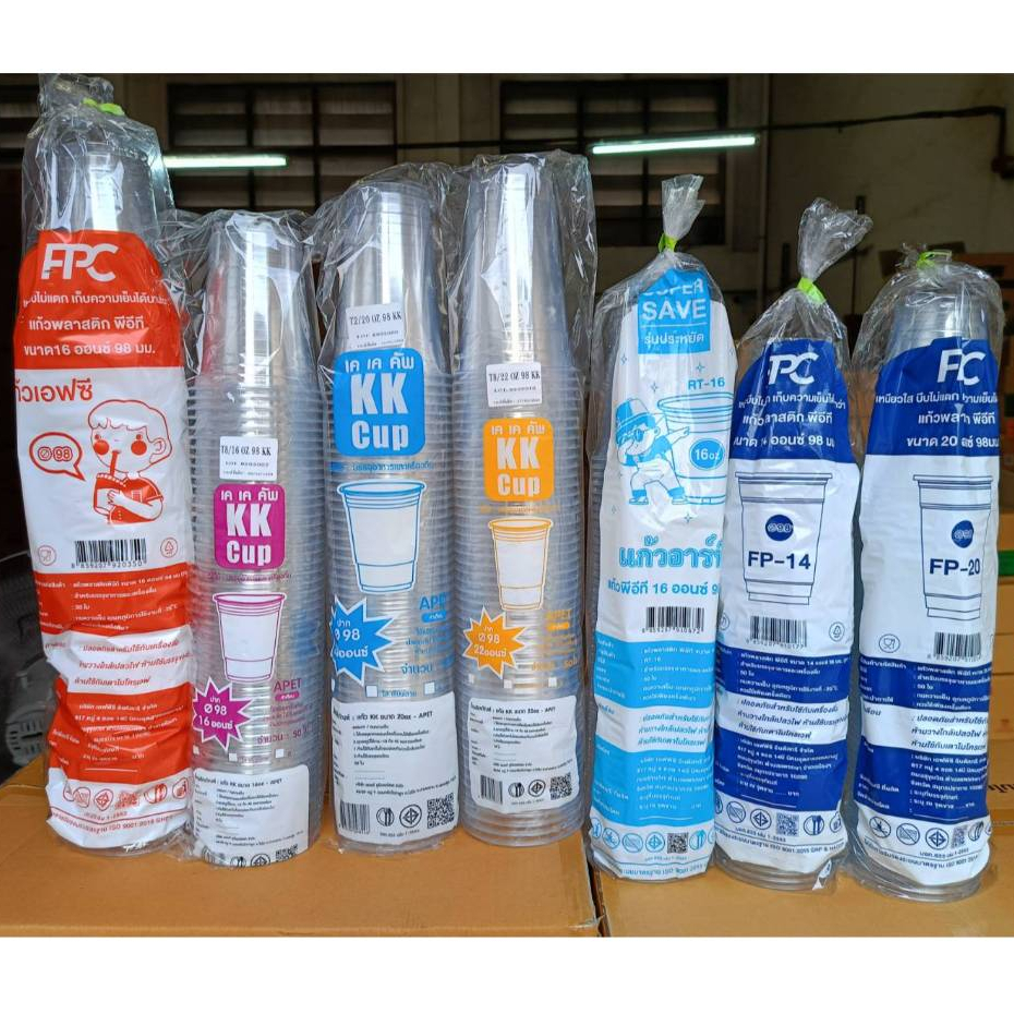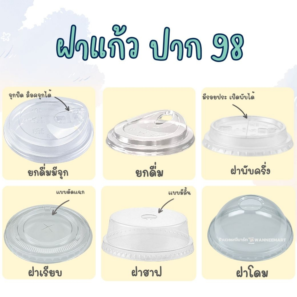 แก้ว PET 50ใบ เนื้อแข็ง ทรงสตาร์บัค 16/20/22oz. ปาก 98 พร้อมฝา ฝาโดม ฝาฮาฟ ฝายกดื่ม ฝาชาชีส แก้วพลาสติก