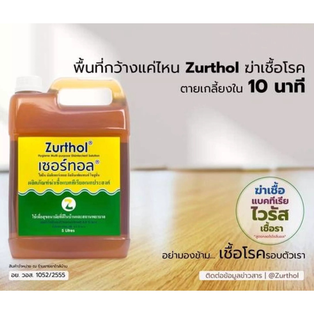 ZURTHOL เซอร์ทอล ผลิตภัณฑ์ฆ่าเชื้อแบคทีเรียอเนกประสงค์ขนาด 5 ลิตร (1 แกลลอน)