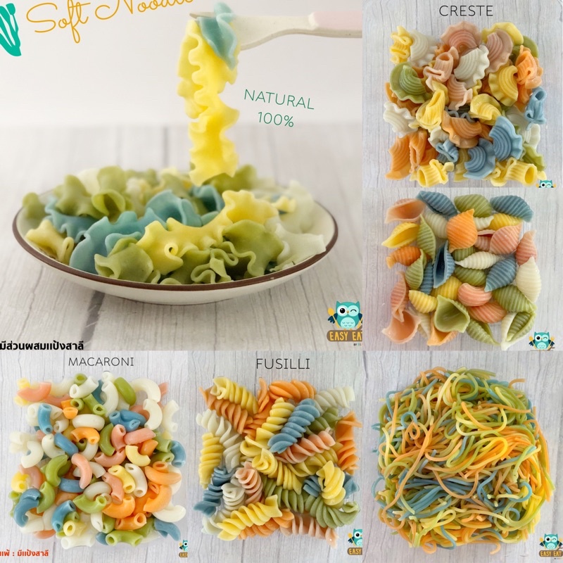 มักกะโรนีข้องอ (มีแป้งสาลี) ผสมผักธรรมชาติ 100% นุ่ม อร่อย วิตามินสูง ทานง่าย ไม่มีสารเคมี ( 8 เดือน+) 200g