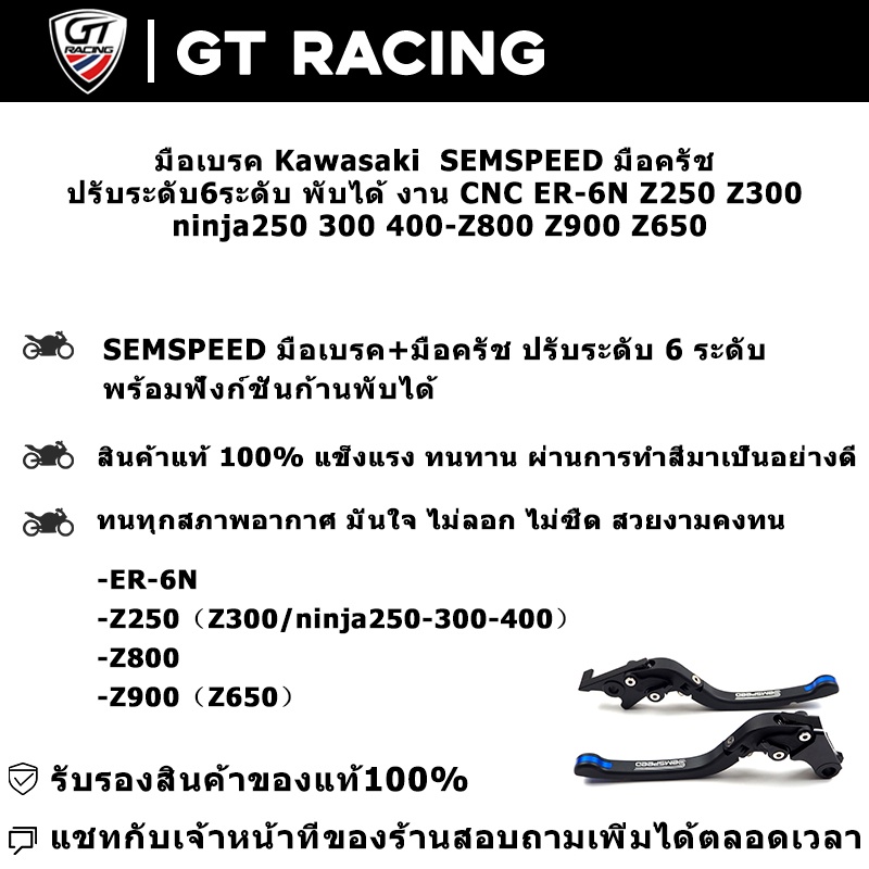มือเบรค Kawasaki SEMSPEED มือครัช ปรับระดับ6ระดับ พับได้ งาน CNC ER-6N Z250 Z300 ninja250 300 400-Z800 Z900 Z650