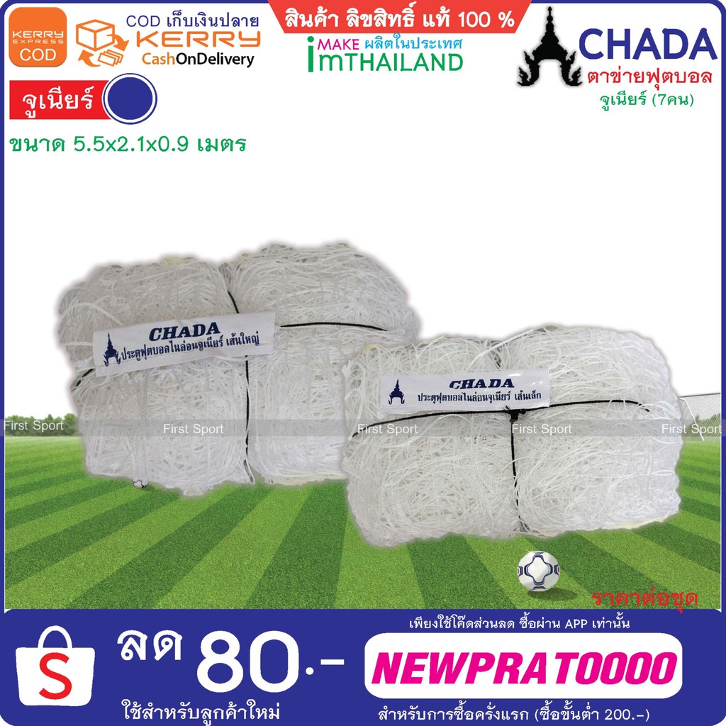 (ออกใบกำกับภาษีได้) ตาข่าย ฟุตบอล 7 คน (จูเนียร์) ชฎา ขนาด 5.5 x2.1 x0.9 เมตร ของแท้💯%