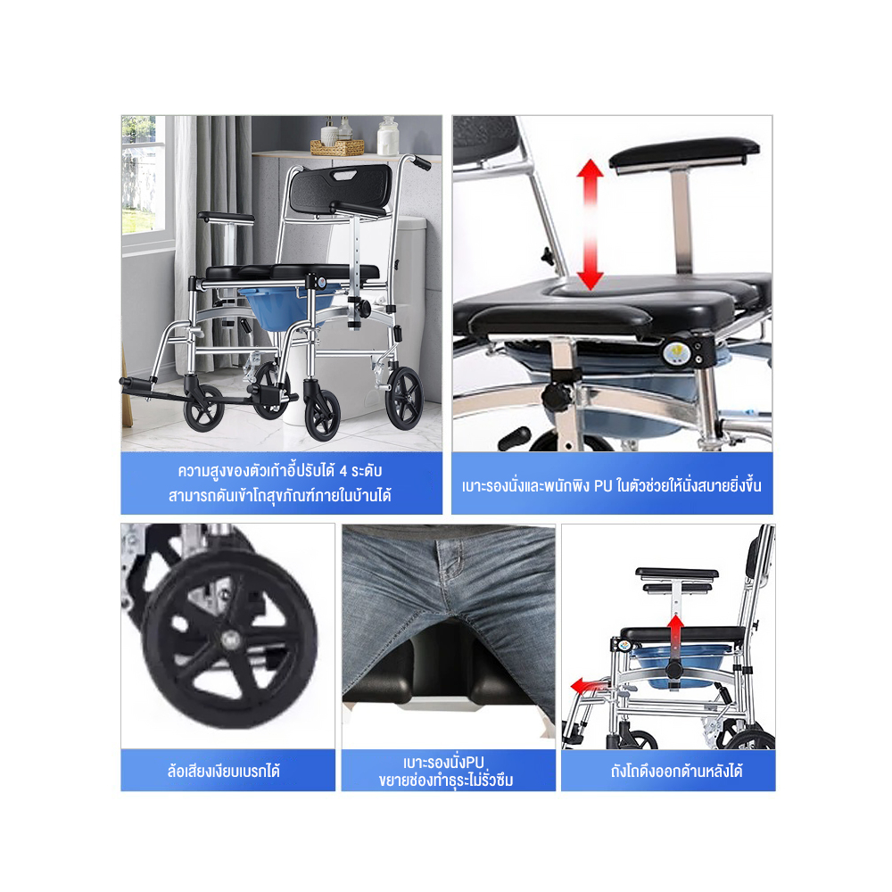 เก้าอี้นั่งถ่าย เก้าอี้โถมีล้อห้องน้ำผู้สูงอายุผู้ป่วยทุพพลภาพเก้าอี้เคลื่อนที่เก้าอี้อาบน้ำเก้าอี้โถสุขภัณฑ์ผู้ใหญ่โถอา