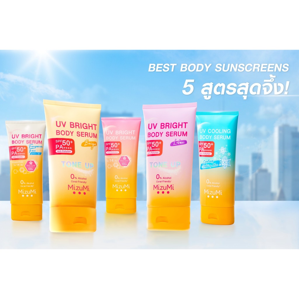 mizumi มิซึมิ ยูวี ไบร์ท บอดี้ เซรั่ม ผลิตภัณฑ์บำรุงผิวผสมสารกันแดด SPF5 0 PA++++ 100-180 มล.