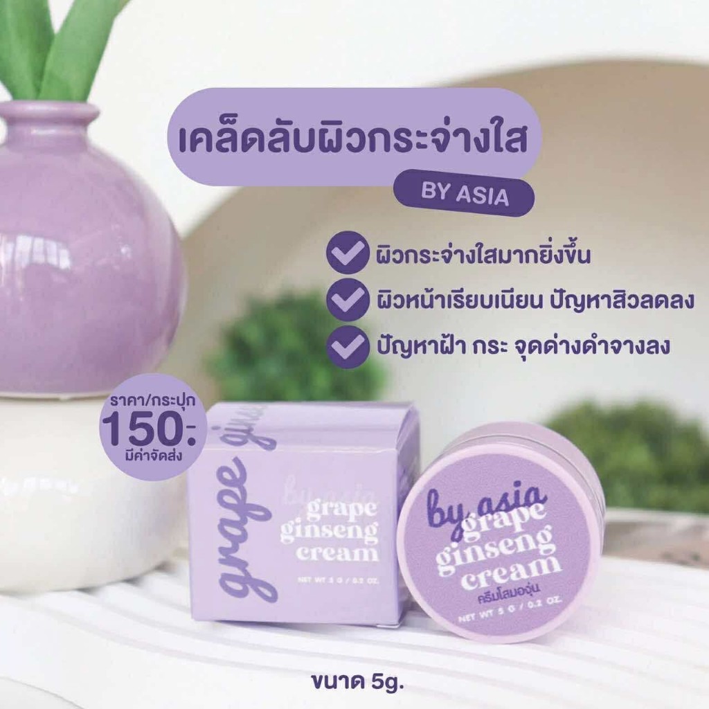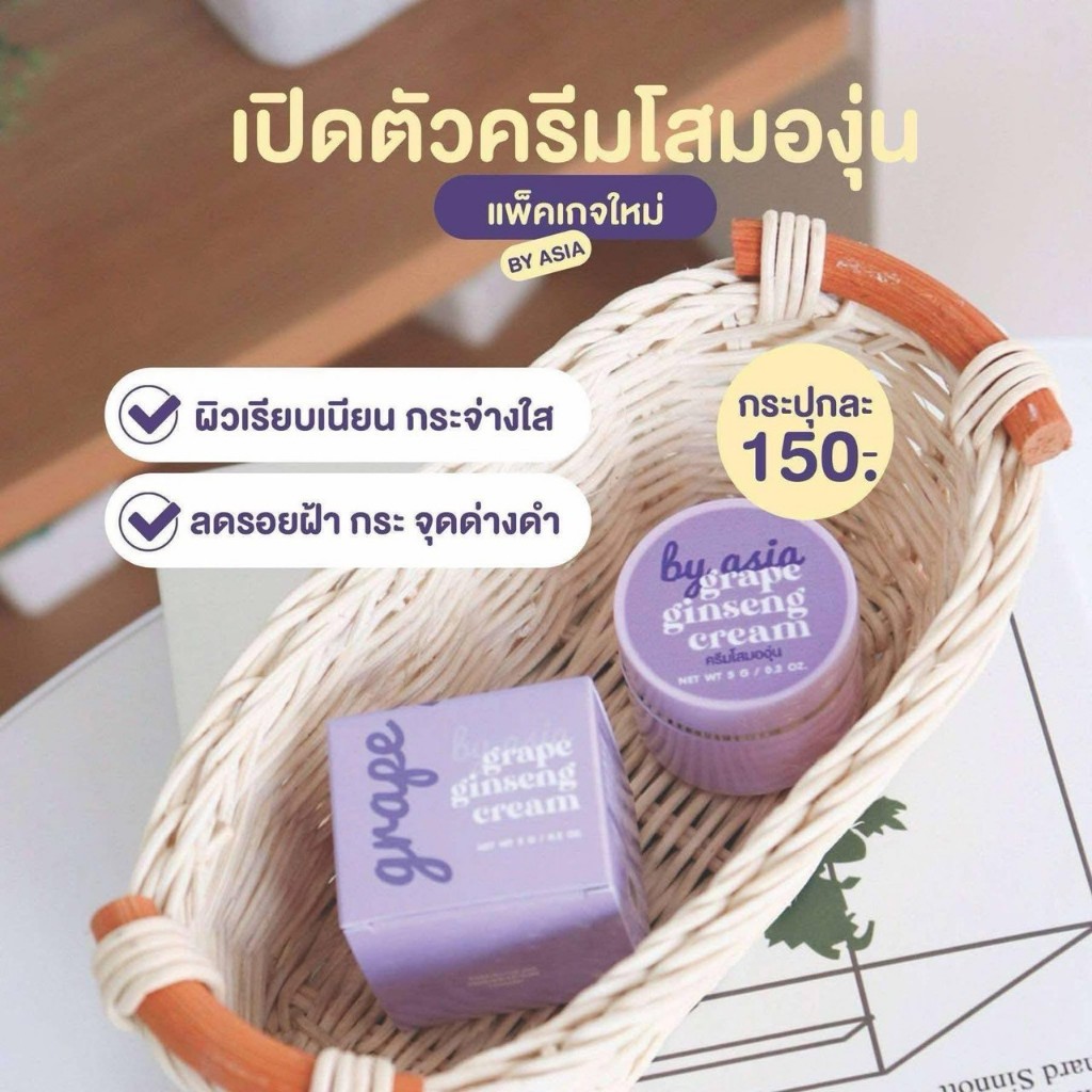 Grape Ginseng Cream by asia แท้100% โสมองุ่นหน้าใส 🍇 ลดสิว ฝ้า กระ ผิวหน้าขาวกระจ่างใส 5 g.