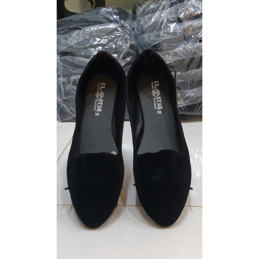 คัทชู ไม่มีส้น หัวแหลม กำมะหยี่ สีดำ