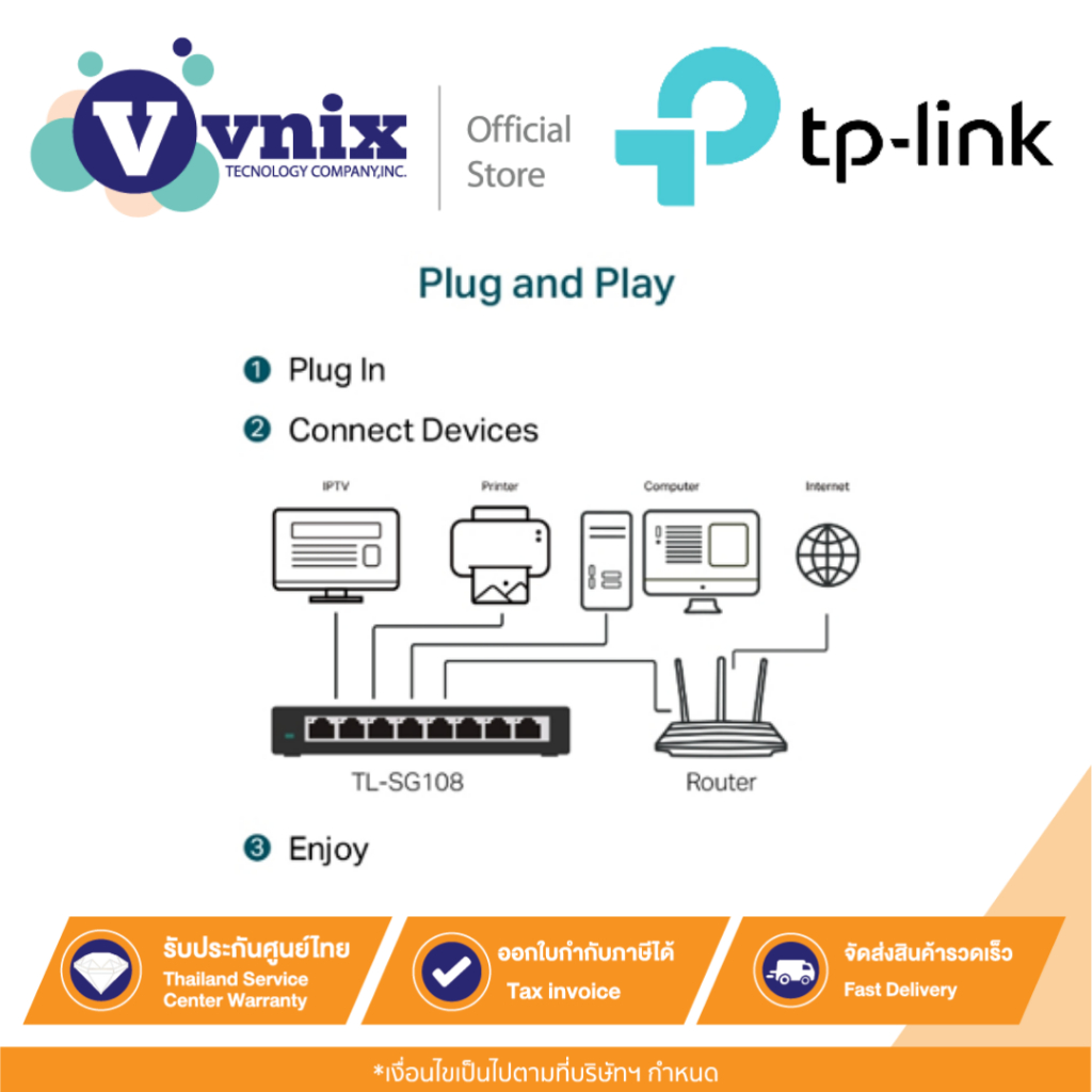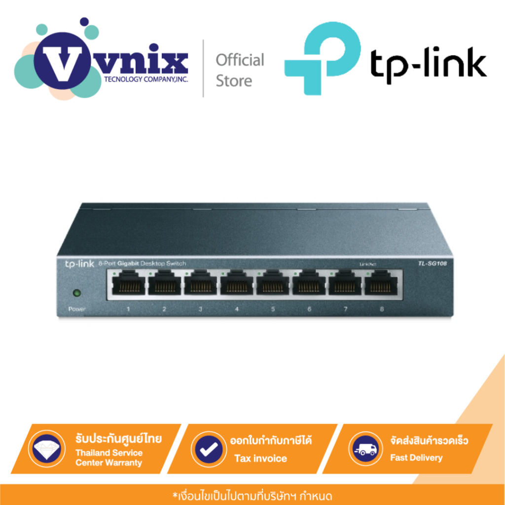 TP-LINK TL-SG108 SWITCH HUB สวิตซ์ฮับ 8 PORTS GIGABIT PORT IN METAL CASING รับประกันตลอดอายุการใช้งาน By Vnix Group