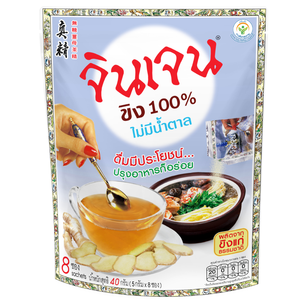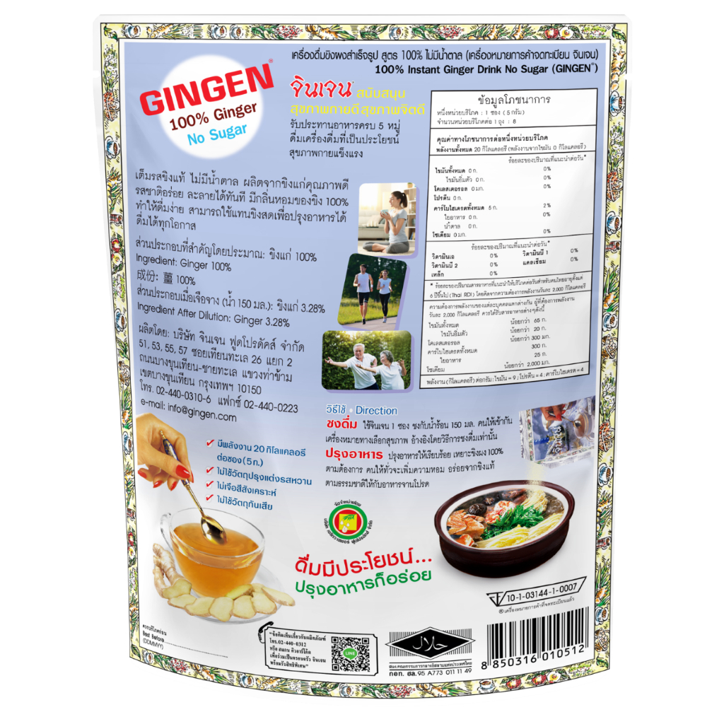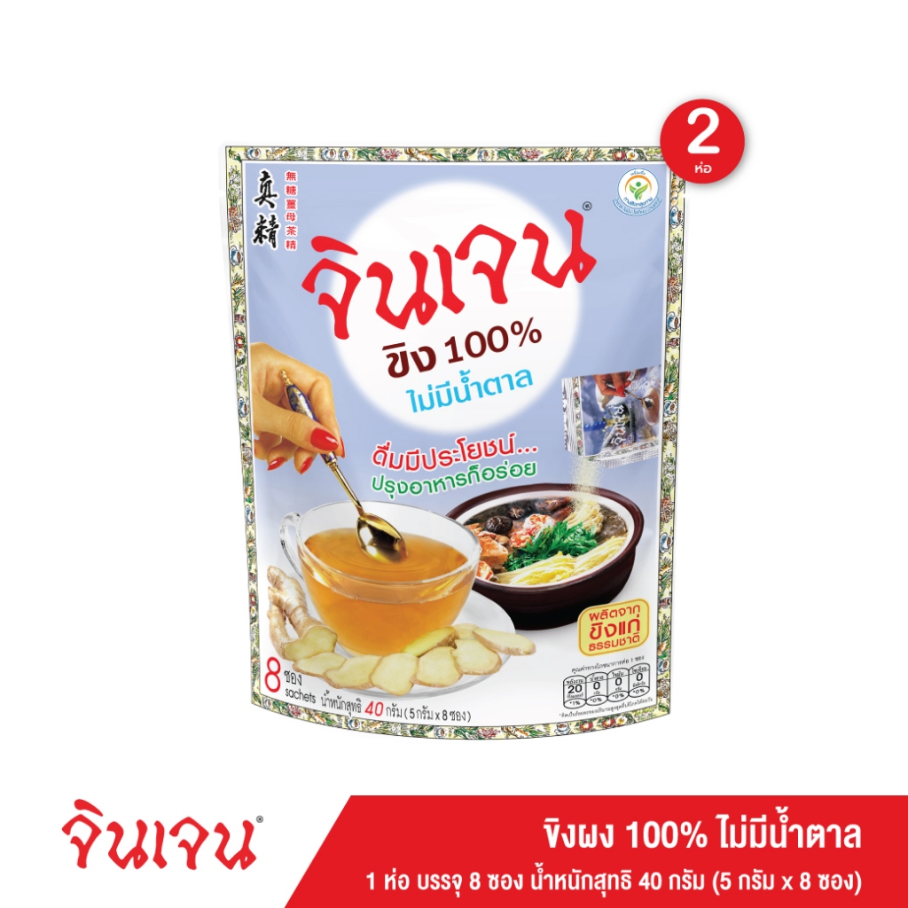 จินเจน ขิงผง 100% ไม่มีน้ำตาล x 2 ห่อ ( 16 ซอง) ขนาด 40 g น้ำขิง ขิงผงสำเร็จรูป สูตร4 น้ำขิงชงดื่ม ชาขิง Gingen Ginger