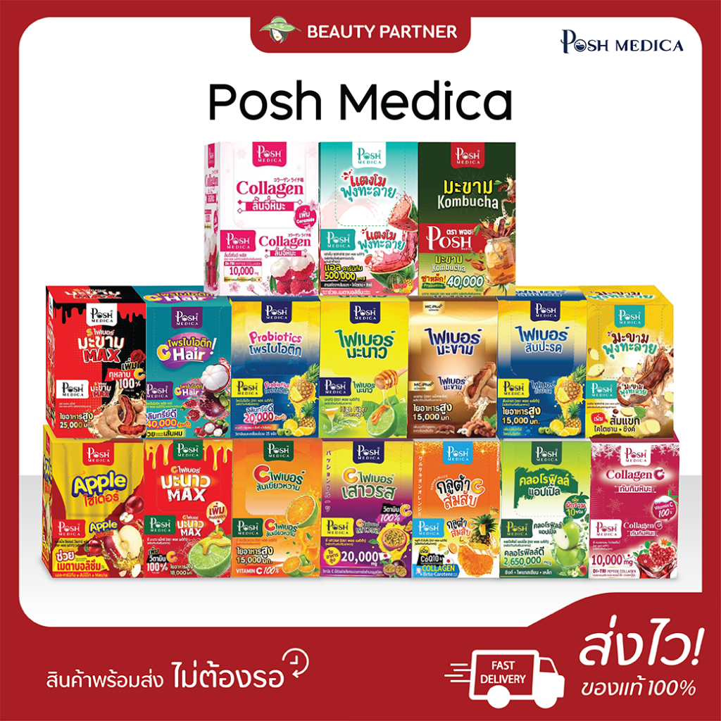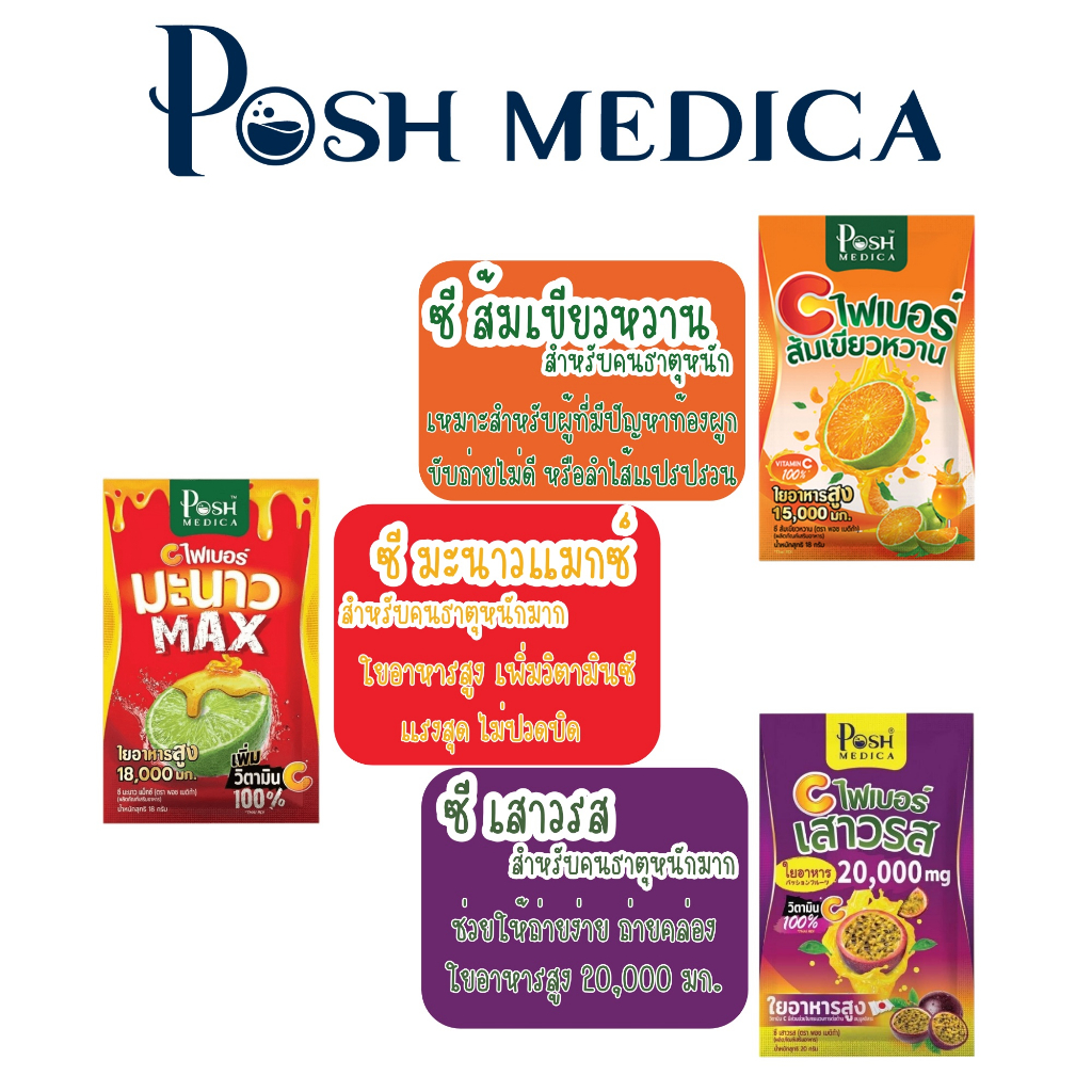 Posh Medica Fiber / Collagen พอชเมดิก้า ไฟบอร์ / พอช คอลลาเจน [เลือกรส] [1กล่อง] ไฟเบอร์แบบชง คอลลาเจนแบบชง ฟื้นฟูผิว