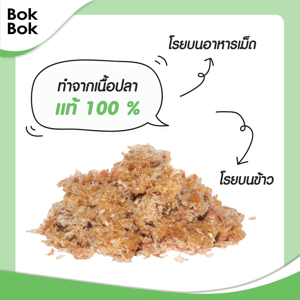 Bok Bok บ๊อกบ๊อก ท็อปปิ้งโรยอาหาร ปลาหยอง 50 กรัม 3 ซอง ทำจาก เนื้อปลา หมา แมว ทานได้ แพ้ไก่ทานได้ ไม่ปรุงรส