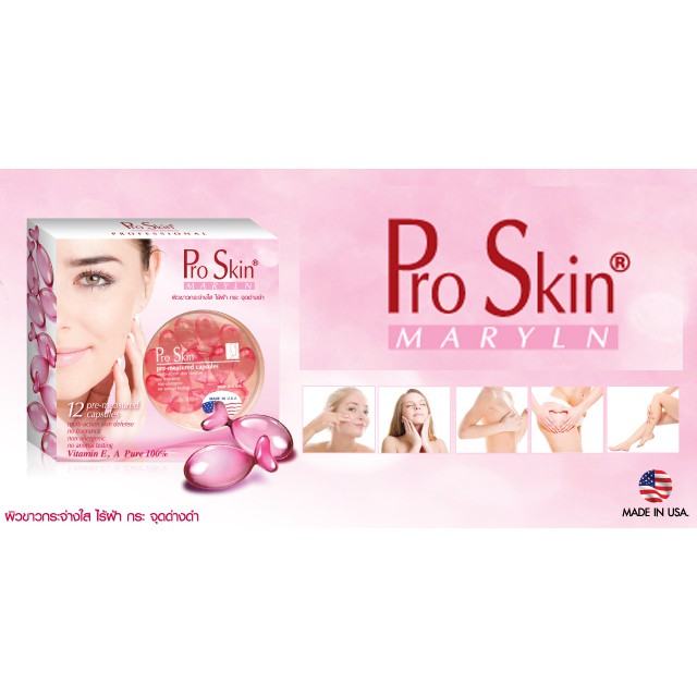 Pro Skin Maryln มีขนาด 6,12 แคปซูล ผลิตภัณฑ์บำรุงผิวเข้มข้นจากวิตามินธรรมชาติ 100%