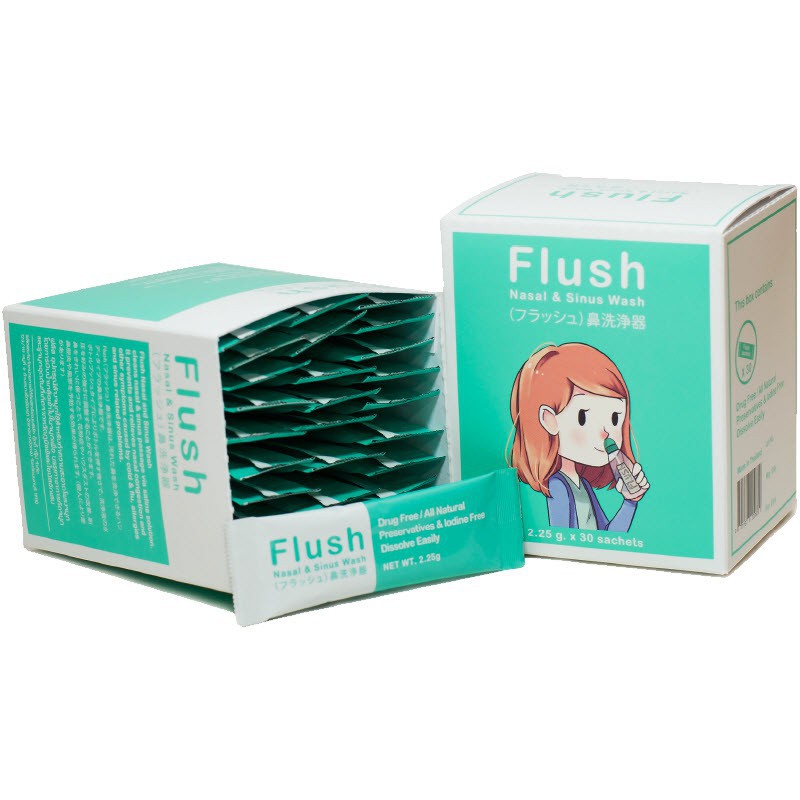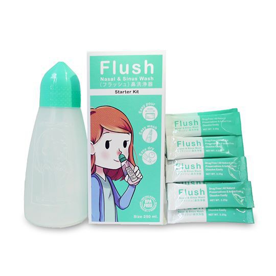 Flush ฟลัช ชุดอุปกรณ์ล้างจมูก แถมแปรงล้างขวด และเกลือ 14 ซอง และ เกลือกล่องรีฟิล (1กล่อง/30 ซอง)