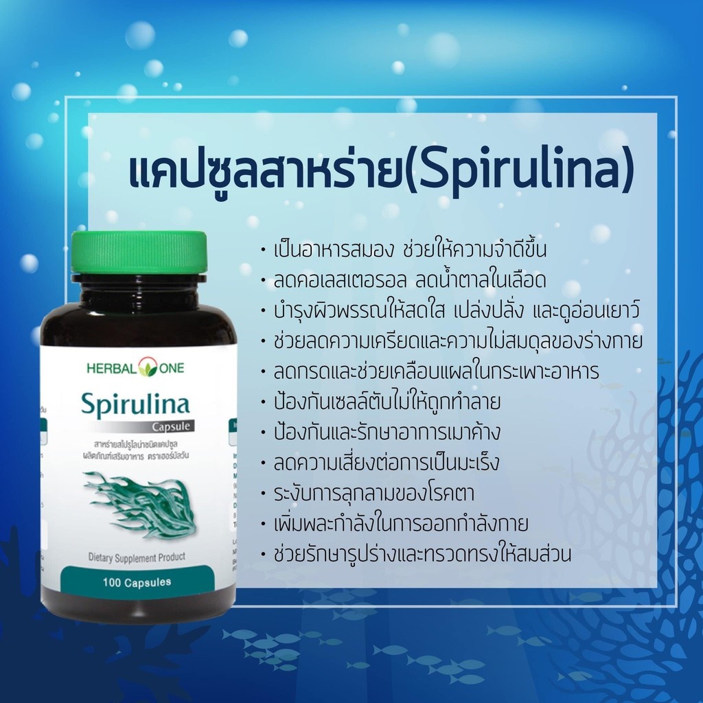 Herbal One Spirulina เฮอร์บัล วัน สาหร่ายสไปรูไลน่าชนิดแคปซูล (อ้วยอันโอสถ)
