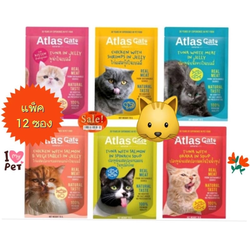 *ล้างสต๊อก*ยกโหล12 ซอง70กรัม Atlas อาหารแมวทำจากเนื้อปลาทูน่าแท้ไม่ใส่วัตถุกันเสีย.